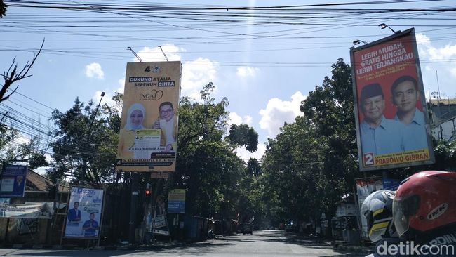 Pantauan detikJabar, Minggu (11/2/2024) pukul 10.00 WIB, APK masih terlihat di persimpangan Jalan Rajawali Timur-Jalan Nasional, Kota Bandung. APK berupa baliho baik yang dipasang dengan bambu maupun di papan reklame masih terlihat dengan jelas.