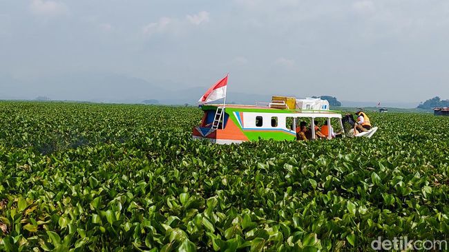 Seperti perjalanan distribusi logistik Selasa (13/2/2024). Hamparan eceng gondok sepanjang mata memandang, membuat perjalanan menjadi lebih lama. Perahu harus berjuang mendorong eceng gondok dengan risiko kipas tersangkut akar.