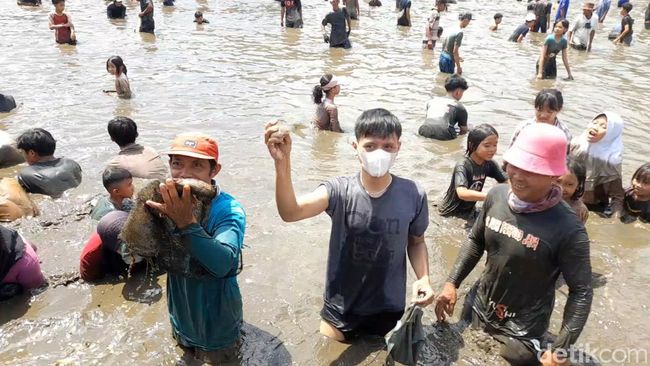 Ia tampak terampil menangkap ikan dengan tangan kosong. Ia bahkan memiliki trik tersendiri hingga berhasil menangkap dua ikan sekaligus. "Gampang, caranya dijaring saja pakai baju yang saya pakai ini," ucapnya sambil tertawa riang.