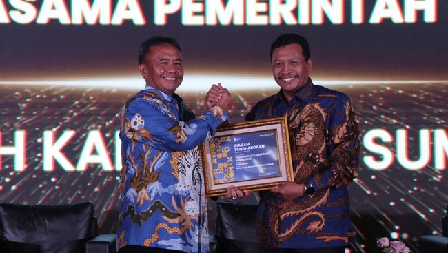Pj Bupati Sumedang Herman Suryatman mengatakan penghargaan tersebut menjadi kado bagi warga masyarakat Sumedang, khususnya bagi desa-desa yang menjadi lokus Program Perguruan Tinggi Mandiri Gotong Royong Membangun Desa (PTM-GRMD) Tahun 2023-2024.