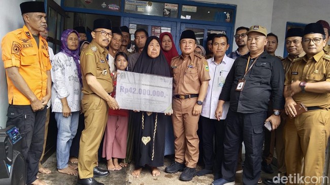 Pj Bupati Kuningan R Iip Hidajat menyerahkan secara simbolis santunan jaminan kematian senilain Rp 42 juta kepada Ucih (79) yang merupakan ibunda Yayan di rumah duka di Kuningan. Didampingi Kepala Kantor BPJS Ketenagakerjaan Cabang Cirebon Sudarwoto dan Sekda Kuningan Dian Rachmat Yanuar, penyerahan santunan berlangsung haru.