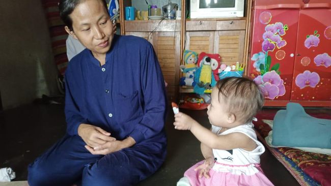 "Walaupun dokter dari rumah sakit menyarankan harus cek paru dan jantung Rayna, sampai saat ini saya dan suami belum bisa melakukannya karena keterbatasan biaya. Suami saya kebetulan cuman kuli bangunan penghasilannya tidak pasti terus saya cuman bantu-bantu tetangga jadi terkendala biaya," ucapnya.