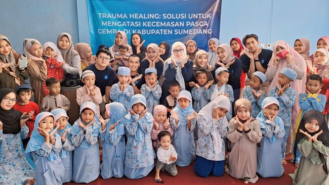 "Kegiatan trauma healing difokuskan di TPA Nurul Huda, kelurahan Talun, yang merupakan salah satu wilayah terdampak gempa Sumedang. Sebanyak 27 anak berusia 2 hingga 6 tahun terlibat dalam pelatihan trauma healing. Orang tua anak-anak korban gempa juga diikutsertakan dalam pelatihan agar dapat memberikan pendidikan kepada anak-anaknya bagaimana menghadapi gempa," ungkap Sri Hartati.