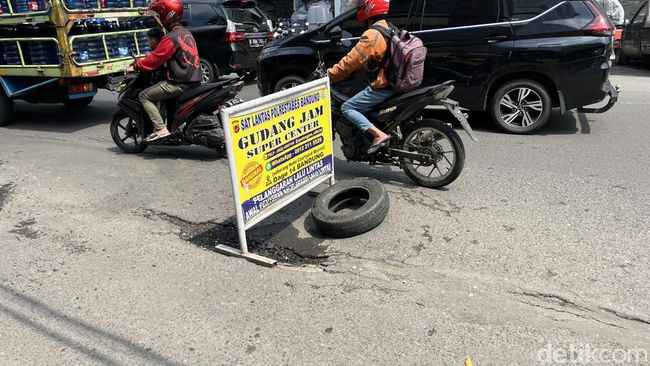 Pantauan detikJabar pada Rabu (6/3/2024) pagi, jalan Suniaraja yang biasa ramai kendaraan lalu-lalang pun jadi semakin padat. Kendaraan terutama motor, terlihat menghindari lubang yang diperkirakan sudah menganga selama seminggu itu.