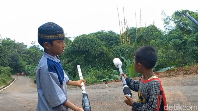 "Ini belesong mainan kaya meriam. Ini terbuat dari kaleng bekas disambung pakai botor terus pake spiritus," ujar Dadan Haryanto anak pemain belesong ditemui detikJabar saat bermain bersama teman-temannya, Rabu (12/03/2024).