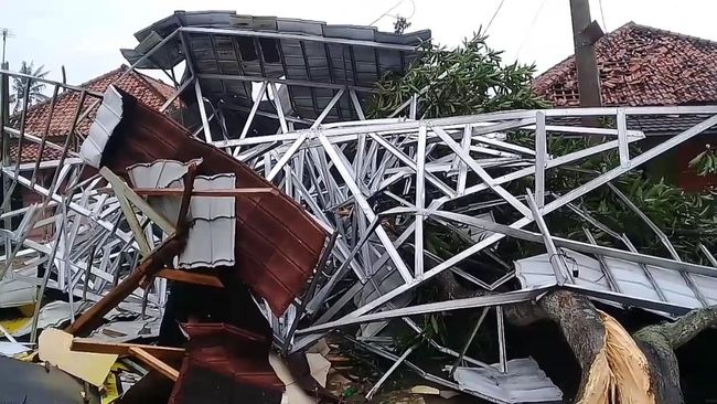 "Sekitar jam setengah 8 malam waktu salat isya sama tarawih saya ada di masjid, terus hujan sedikit nggak lama ada angin gede terus langsung pada teriak sama ya sudah banyak yang rusak atap-atap rumahnya," ujar Sulaeman, Kamis (14/3/2024).