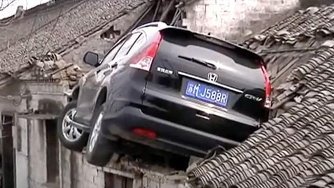 Dikutip dari detikOto, di media sosial viral video mobil Honda CR-V tersangkut di atap rumah warga. Usut punya usut, peristiwa itu bukan terjadi di Indonesia, melainkan di Kota Taizhou, China. Peristiwa itu terjadi pada 2017.