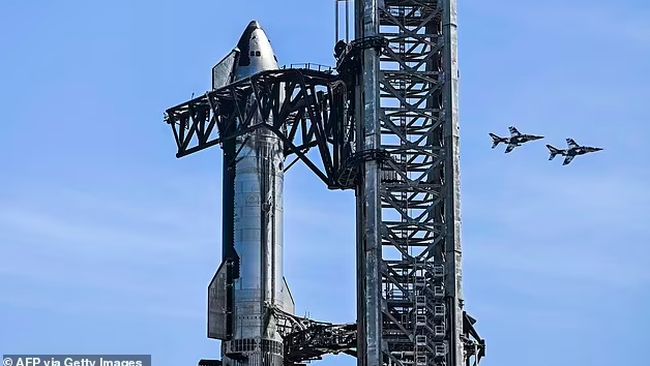 Pesawat dua tahap, yang terdiri dari kapal pesiar Starship yang dipasang di atas penguat roket Super Heavy yang menjulang tinggi, lepas landas dari fasilitas uji penerbangan SpaceX di Boca Chica, Texas, di Gulf Coast pada pukul 09:25 ET.