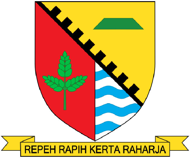 4. Di bawah perisai tertulis dalam pita kuning: répéh rapih kerta raharja berarti kehidupan tentram, tertib, lingkungan bersih, dan sejahtera lahir batin.