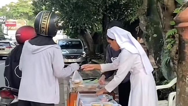 Dia mengatakan, video itu diambil pada Selasa 19 Maret 2024 sekitar pukul 18:02 WIB. Terlihat, biarawati itu menjual berbagai macam gorengan dan kolak.