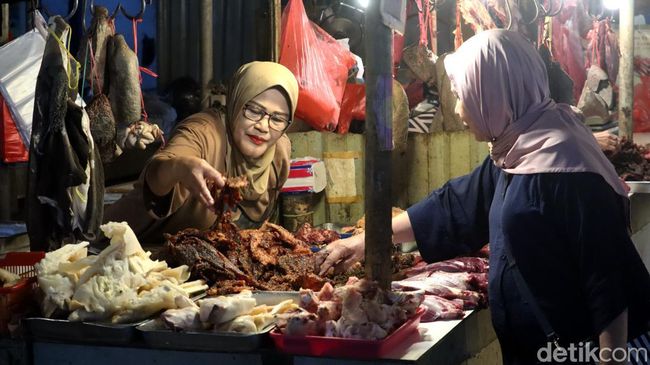 Pantauan detikJabar di Pasar Kosambi, Rabu (27/3/2024) siang, kios penjual daging sapi ramai dikunjungi pembeli. Pengunjung silih berganti membeli daging sapi di kios pedagang.