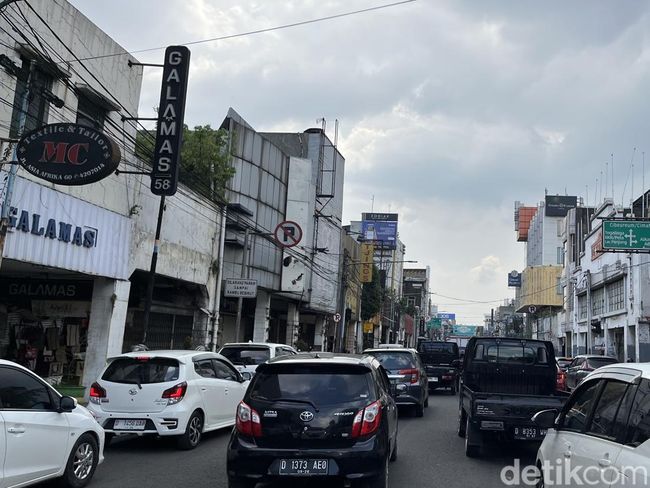 Kemacetan mengular juga terlihat di Jalan Kautamaan Istri menuju Dewi Sartika. Puluhan kendaraan terlihat memadati parkiran salah satu pusat perbelanjaan di jalan tersebut. Selain itu, tentu saja kepadatan terasa di Pasar Baru, Jalan Otista, Kota Bandung.