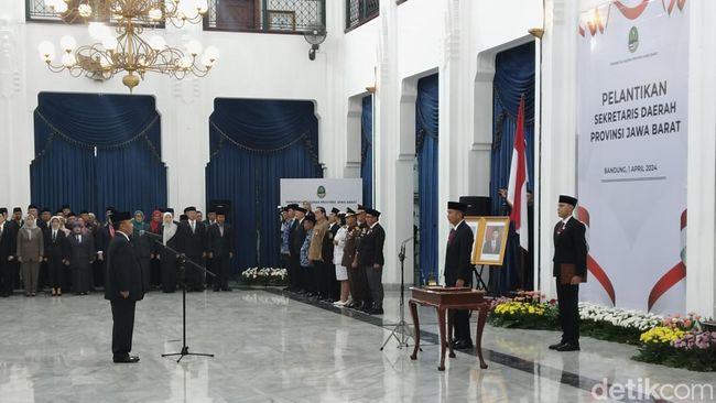 Pj Gubernur Jawa Barat Bey Machmudin melantik Herman Suryatman menjadi Sekretaris Daerah (Sekda) Jabar. Pelantikan itu dilangsungkan di Aula Barat Gedung Sate, Bandung, Senin (1/4/2024).