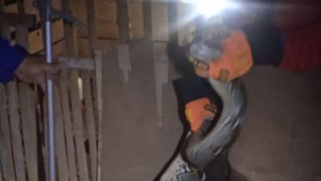Petugas Pemadam Kebakaran (Damkar) menangkap seekor ular sanca besar di Garut. Ular tersebut merupakan biang kerok raibnya beberapa ekor ayam milik warga di daerah Limbangan.