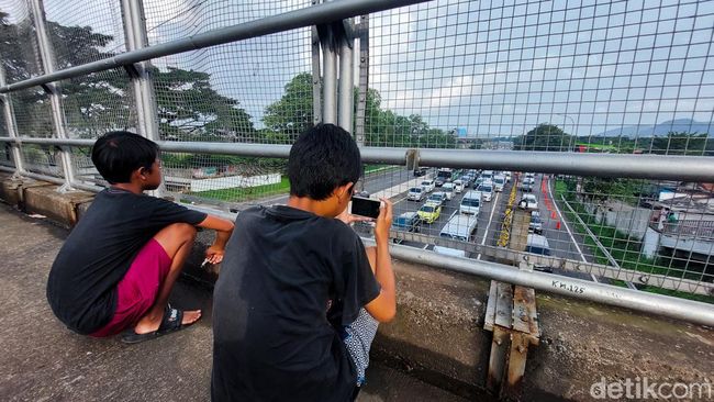 "Lagi nunggu bus, mau difoto terus posting di IG khusus bus," kata Daffa saat berbincang dengan detikJabar di atas jembatan penyeberangan Tol Cipularang, Minggu (14/4/2024).