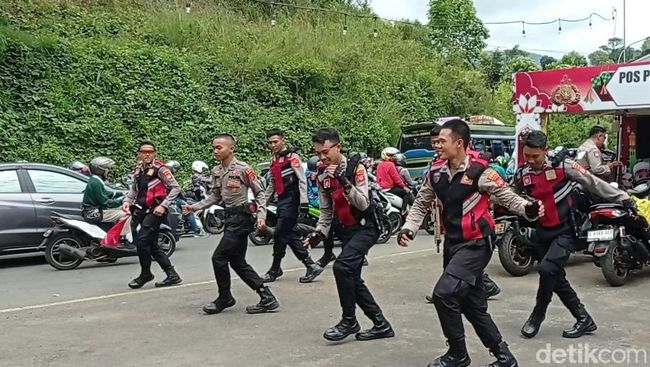 Di tengah situasi itu sejumlah anggota Satuan Samapta Polres Tasikmalaya Kota berinisiatif menghibur pemudik balik yang melintas di Pospam Leter U Gentong.