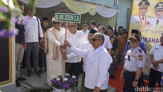 "Alhamdulillah hari ini pondok pesantren mendapatkan kehormatan yang besar dari Bupati Kabupaten Sukabumi Marwan Hamami dengan diresmikannya ruas Jalan Nyangkokot-Perbawati menjadi Jalan KH. Zezen ZA. Kemuliaan ini merupakan suatu tantangan supaya kami mampu lebih baik lagi memperjuangkan almarhum dan juga melanjutkan wilayah Sukabumi ini menjadi tempat yang religius," kata Aan kepada detikJabar, Rabu (17/4/2024).