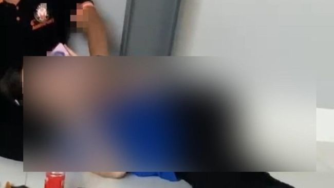 Pria itu kemudian memangku seorang wanita berbaju biru yang tengah memainkan ponselnya. Di pertengahan video, seraya tersenyum pria tersebut tiba-tiba meraba dan meremas bagian dada perempuan tersebut.