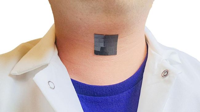 Perangkat AI ini memiliki bentuk yang lembut, tipis, dan elastis. Ukurannya kurang lebih 1 inci persegi. Dalam penerapannya, alat dapat ditempelkan pada kulit di luar tenggorokan.