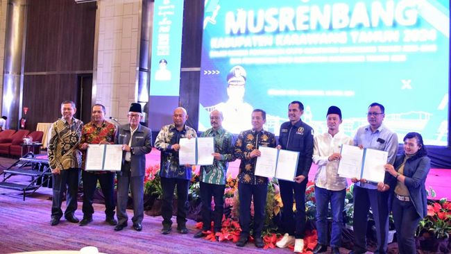 "Penyusunan rencana pembangunan jangka panjang daerah Kabupaten Karawang tahun 2025 - 2045 telah sampai pada tahap rancangan dan sudah dilakukan proses penyelarasan dan sinkronisasi dengan RPJPN dan RPJPD Jawa Barat yang mengacu pada 5 sasaran visi dan 8 misi pembangunan misi, 17 arah pembangunan melalui 45 indikator utama pembangunan," kata oleh Bupati Karawang Aep Saepuloh dalam keterangan tertulis, Jumat (19/4/2024).