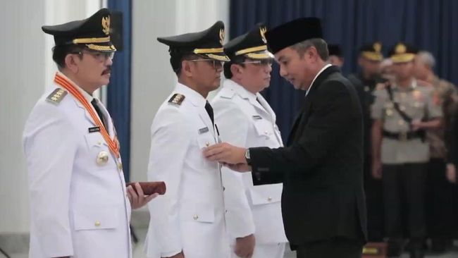 Penjabat (Pj) Gubernur Jawa Barat Bey Machmudin melantik tiga penjabat kepala daerah. Ketiganya ialah Pj Wali Kota Bogor, Pj Bupati Ciamis, dan Pj Bupati Sumedang.