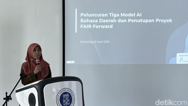 "Ada potensi bahasa daerah yg mulai punah. Tercatat sebanyak 24 bahasa daerah di Indonesia dengan 0 penutur bahasa. Hal ini tentu menjadi ancaman untuk bahasa daerah kita," kata Karlina Octaviany selaku AI (Artificial Intellegence) Advisor Fair Forward, GIZ Indonesia, di Gedung STP ITB, Bandung Senin (22/4/2024).