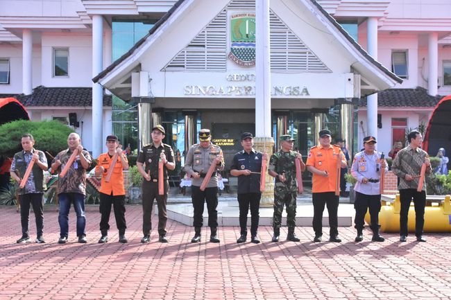 Bupati Karawang Aep Syaepuloh dalam kesempatan itu bertindak sebagai pembina upacara. Dia menyampaikan bahwa kesiapsiagaan bukan hanya urusan pemerintah atau dinas terkait, melainkan tanggungjawab bersama.