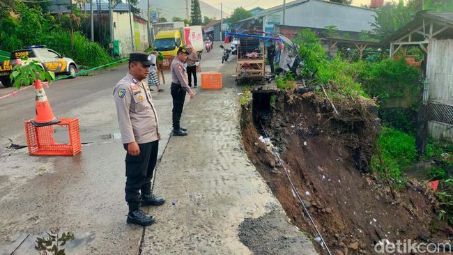 "Iya tadi malam (jalan longsor) di bantaran sungai Pencelut, Jalan Raya Pembangunan," kata Suwaji kepada detikJabar, Jumat (26/4/2024).