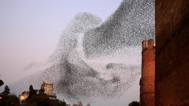 Para fisikawan menciptakan gambar tiga dimensi kawanan burung jalak di Roma, Italia sehingga mereka dapat melacak burung dan respon dari burung terdekatnya.