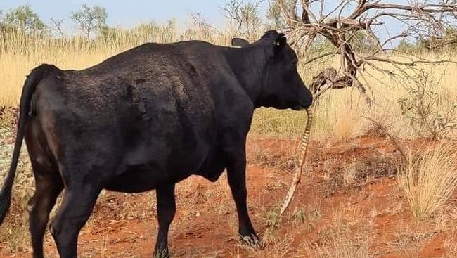 Seekor sapi kedapatan mengunyah ular piton di Australia. Padahal, seperti diketahui, sapi adalah hewan herbivora. Itu berarti, mereka mengonsumsi tumbuh-tumbuhan sebagai makan utama dalam diet. Dengan demikian, pemandangan sapi makan ular adalah momen istimewa.