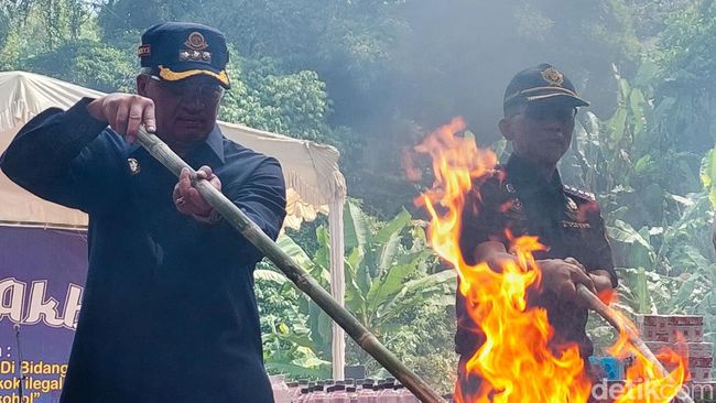 Kobaran api membakar ratusan bungkus berisi rokok ilegal yang disita oleh Satpol PP Kota Cimahi. Sisanya bakal dimusnahkan dengan cara dihancurkan di Tempat Pembuangan Sampah Terpadu (TPST) Cibeber.