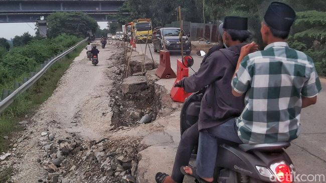 Setengah badan jalan sepanjang 300 meter yang mendekati jembatan Tol Jakarta-Cikampek (Japek) itu amblas cukup parah, bahkan di sebelah kiri jalan yang belum amblas itu pun hampir putus karena masih digunakan lalu lintas untuk mobil bermuatan berat.