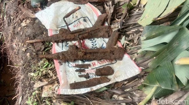 "Asep sedang menggali tanah pematang (dekat parit) di pinggir kolam ikan untuk membenahi kolam ikan. Secara tidak sengaja saat menggali tanah sedalam sekitar satu meter, menemukan suatu barang yang keras dan tertutup tanah. Saat digali lebih dalam diketahui ternyata terdapat diduga dua pucuk senjata api jenis laras panjang, serta beberapa peluru dan selongsong," kata Yanto kepada detikJabar, Selasa (30/4/2024).