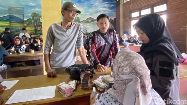 Pantauan detikJabar di lokasi, beberapa buruh nampak mengantre untuk mendapatkan upahnya. Nama mereka dibacakan satu persatu untuk menerima upah secara tunai.