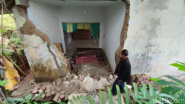 Pantauan detikJabar, Rabu (1/5/2024), sejumlah rumah di Dusun Desa, Desa Sukamaju telah dikosongkan karena terdampak pergerakan tanah. Bahkan ada beberapa rumah yang dindingnya jebol dan belah di bagian lantai.