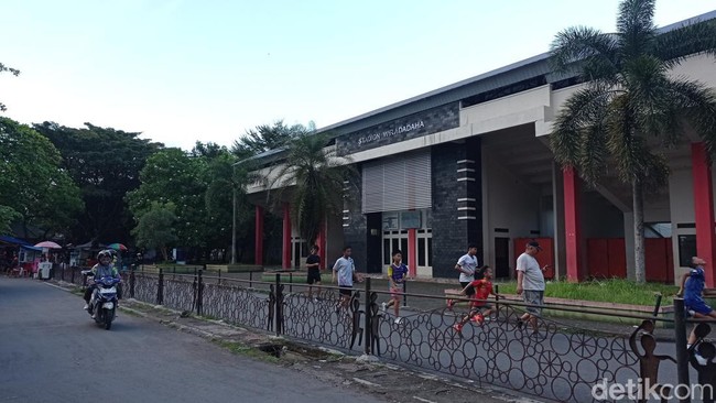 Pantauan detikJabar, Sabtu (4/5/2024) sore, suasana jalan di sekeliling luar stadion Dadaha seperti biasanya ramai oleh warga yang berolahraga lari atau jalan kaki. Berbeda dari sebelumnya di bagian depan stadion dipasangi pagar.
