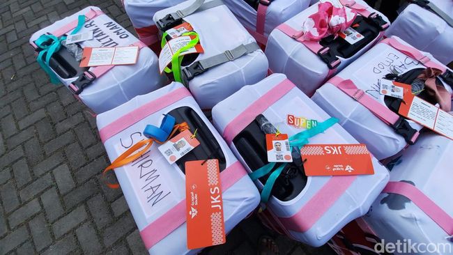 Calon jemaah haji asal Kabupaten Tasikmalaya, Jabar, punya cara unik menandai koper miliknya agar tak tertukar. Koper milik jemaah itu diberangkatkan lebih dulu. Koper diberangkatkan pada Selasa (21/5/2024). Sedangkan calon jemaah haji diberangkatkan pada Rabu (22/5/2024).