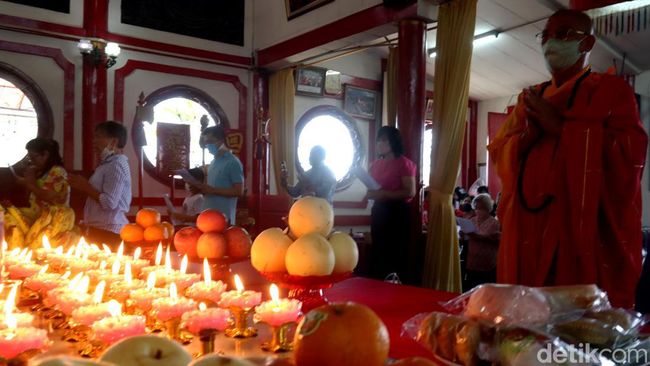 Meski perayaan Waisak di vihara tersebut sudah digelar pada akhir pekan lalu, sejumlah lilin tetap menyala dan tidak dimatikan. Selain itu, beberapa orang di vihara terlihat sibuk membersihkan kawasan vihara.