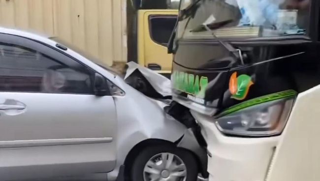 "Pengemudi avanza inisial B mengaku kelilipan mata. Terus gak sadar kalau mobilnya udah ke arah kanan. Karena memang jalannya cukup sempit. Habis itu menabrak bagian depan bis," katanya.
