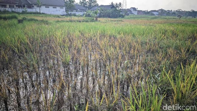 Pantauan detikJabar, Senin (27/5/2024), padi di area persawahan dekat Sirkuit BMX Ciamis sudah banyak yang menguning dan bagian daunnya sudah mati. Namun ada juga padi yang masih hijau tapi sebagian daun sudah mulai terserang hama wereng. Butiran padi pun sudah keluar dari tanamannya.