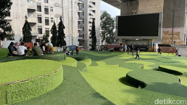 Desainnya yang menyerupai amphiteater dengan tempat duduk yang berkelok dan dilapisi rumput sintetis membuat tempat ini nyaman untuk berkegiatan atau sekedar bersantai menghabiskan waktu bersama teman dan keluarga. Pepohonan di sisi kanan dan kirinya juga memberikan kesejukan di tengah teriknya matahari.