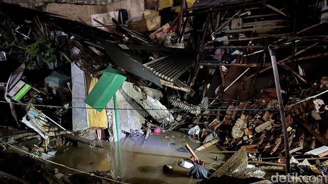 Kejadian tersebut terjadi pada sekitar pukul 16.00 WIB. Pantauan detikJabar, sejumlah rumah tergenang air PDAM, sementara dua rumah rusak parah dan dalam kondisi ambles.