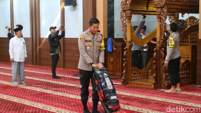 Sejumlah rumah ibadah mulai dari masjid, vihara, kelenteng hingga gereja didatangi polisi. Mereka dengan cekatan membersihkan debu di lantai hingga di mimbar.