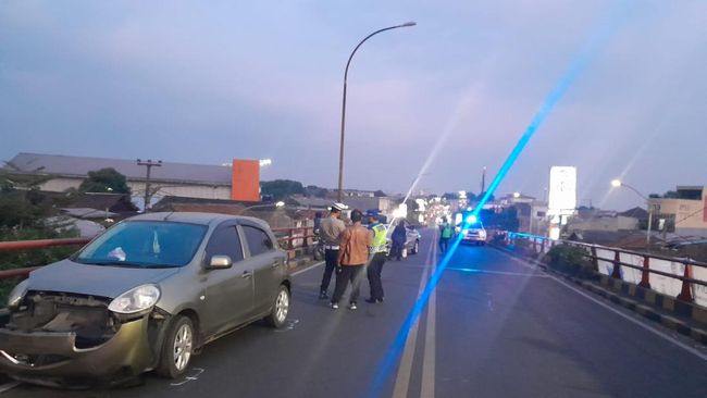 "Kemudian terjadi serempetan atau tabrak samping oleh kendaraan Nissan March menyebabkan kendaraan itu oleng," kata Kasat Lantas Polres Cimahi, AKP Adhi Prasidya Danahiswara saat dikonfirmasi.