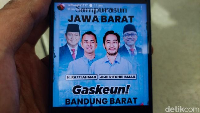Hal yang mengagetkan dari unggahan itu, karena Raffi dan Jeje disebut bakal meramaikan Pilkada Bandung Barat pada tahun 2024 ini. Dalam unggahan di akun instagram @partaiamanatnasional , tertulis keterangan "Sampurasun Jawa Barat, Gaskeun Bandung Barat".