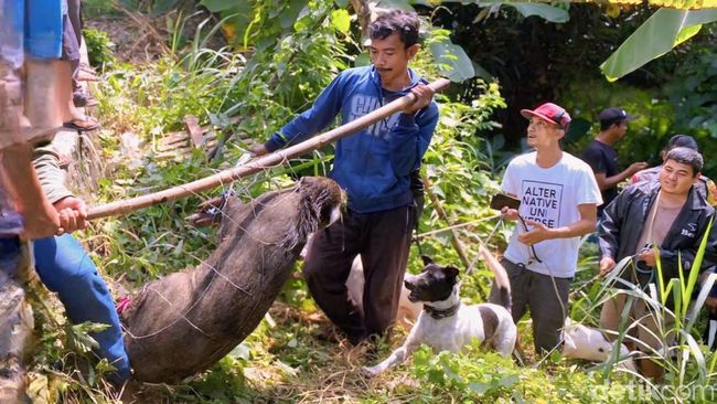"Babi itu diburu oleh tiga orang pemburu dan 12 ekor anjing. Ditangkap di dalam kebun bambu, ketika anjing turun dia lari ke jalan raya dan terperangkap jaring kawat," kata Hendi warga setempat kepada detikJabar, Senin (24/6/2024).