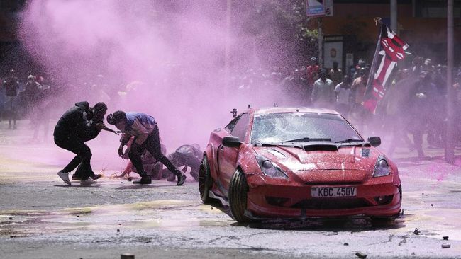 Jakarta - Sejumlah warga melakukan aksi demonstrasi menolak kenaikan pajak di Kenya. Aksi demo berujung ricuh hingga 5 demonstran tewas ditembak. Penembakan dipicu saat demonstran menyerbu Gedung parlemen.