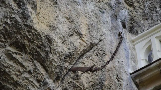 Polisi sedang berusaha mencari tahu bagaimana seseorang bisa memanjat tebing setinggi 100 kaki untuk merampas pedang itu.