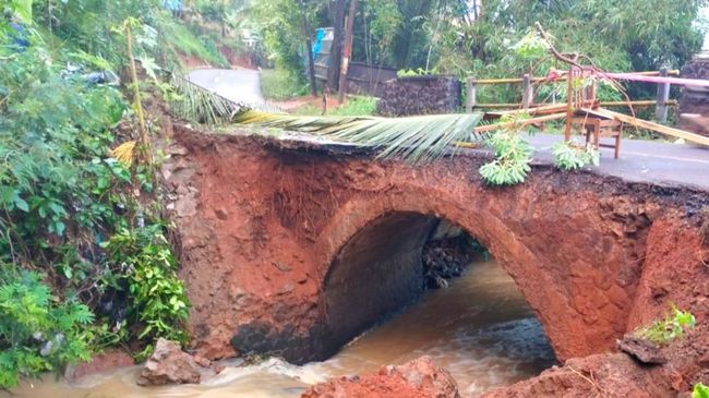 "Sebagian jembatan di Desa Cisontrol, Kecamatan Rancah ambruk saat hujan deras kemarin," ujar Ani Supiani, Selasa (9/7/2024).