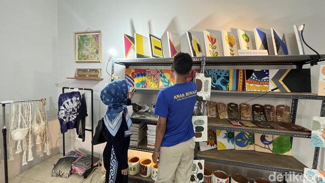"Paling suka musik, main gitar. Di sini sempat membuat lukisan, terus gantungan kunci juga pernah, paling susah yang ini (pajangan dinding dari paku dan benang). Makunya susah," ceritanya pada detikJabar, Sabtu (20/7/2024).